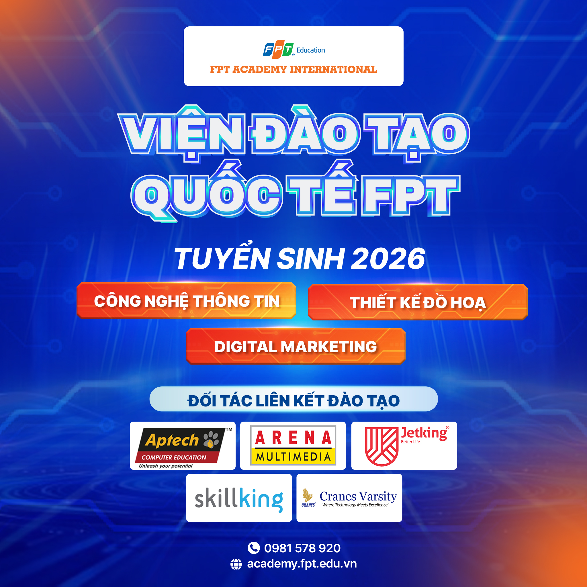Thành lập từ năm 1999, Viện Đào tạo quốc tế FPT là đơn vị đào tạo liên kết quốc tế giữa Tập đoàn FPT và các tập đoàn công nghệ hàng đầu Ấn Độ (Aptech, Jetking, Cranes Varsity). Với hơn 27 năm kinh nghiệm trong lĩnh vực giáo dục công nghệ, Viện Đào tạo quốc tế FPT tập trung đào tạo nguồn nhân lực công nghệ chất lượng cao, sẵn sàng làm việc trong môi trường doanh nghiệp toàn cầu. FPT Academy International (FAI) kế thừa chiến lược đào tạo liên kết quốc tế của Tập đoàn FPT, triển khai mô hình đào tạo nhanh – làm được nghề ngay theo xu hướng số, với thời gian học tối ưu từ 6–24 tháng, dựa trên lợi thế của đối tác toàn cầu và hệ sinh thái FPT.