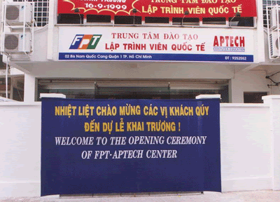 Back-drop khai trương trước cổng FPT-Aptech tháng 9/1999