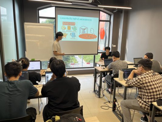 Lớp T2408M thảo luận về thiết kế hệ thống Microservices và demo ứng dụng chat bằng NodeJS